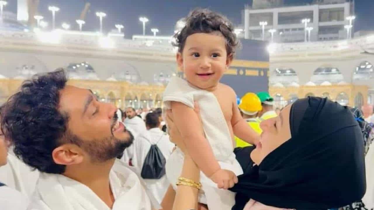 गौहर खानने मक्कामध्ये उमराह करताना पहिल्यांदाच दाखवला मुलाचा चेहरा