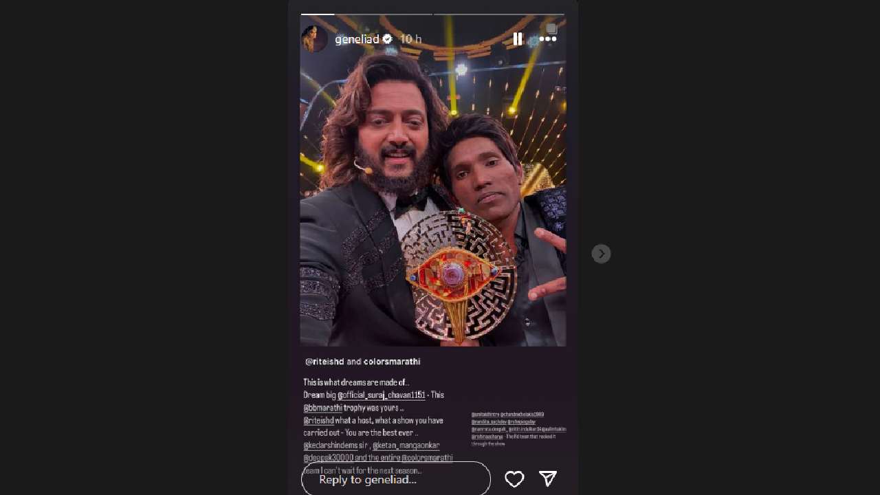 ‘बिग बॉस मराठी 5’चा विजेता सूरज चव्हाणसाठी जिनिलिया वहिनीची खास पोस्ट