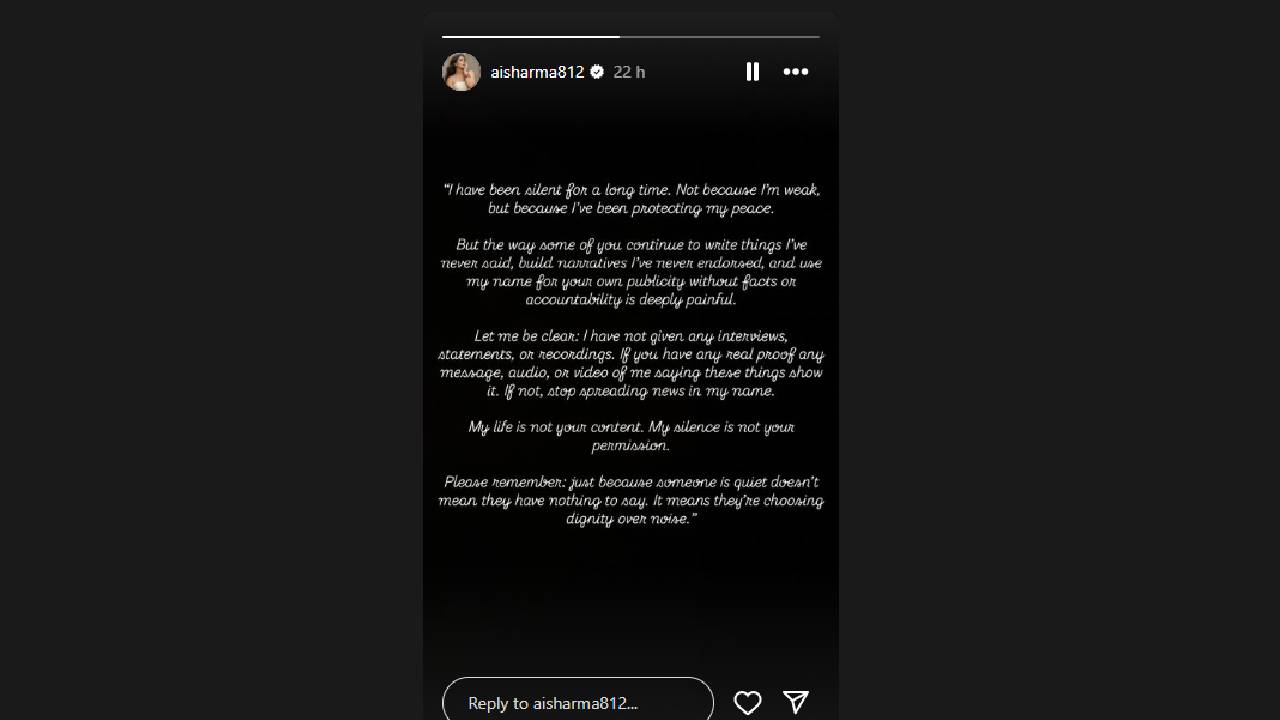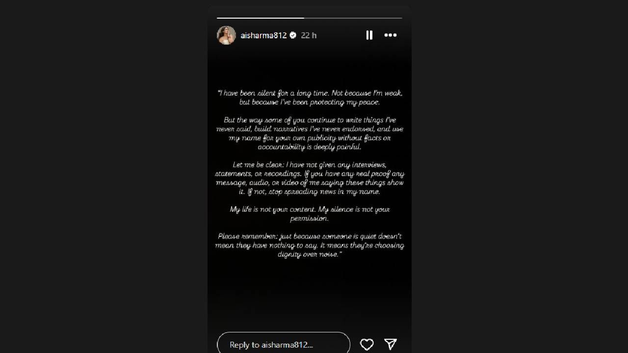 या पोस्टमध्ये ऐश्वर्याने पुढे लिहिलंय, ‘माझं आयुष्य हे तुमच्या कंटेटचा विषय नाही. माझं मौन म्हणजे तुमच्यासाठी परवानगी नाही. हे लक्षात ठेवा की, एखादी व्यक्ती गप्प असेल तर त्याचा अर्थ त्यांच्याकडे बोलायला काही नाही असा होत नाही. त्याचा अर्थ असा होतो की ते गोंगाटापेक्षा आदरपूर्वक वागण्याची निवड करत आहेत.’