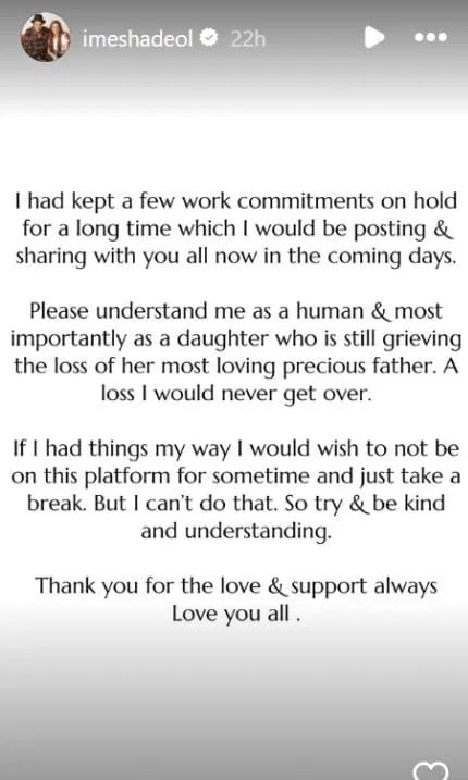 पुढे ईशा म्हणते, ‘हे नुकसान कधीच भरलं जाऊ शकत नाही… माझ्या हातात असतं तर, काही दिवस आणखी ब्रेक घेतला असता… पण असं करु शकत नाही… तुम्हा सर्वांच्या प्रेम आणि पाठिंब्याबद्दल शुभेच्छा…’ असं देखील ईशा पोस्टमध्ये म्हटली आहे…
