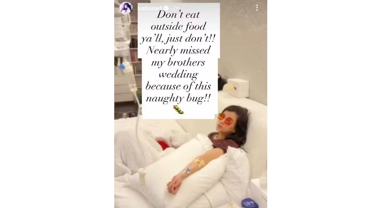 दुसरीकडे या लग्नसोहळ्याच्या गडबडीत हृतिक रोशनची गर्लफ्रेंड आणि अभिनेत्री सबा आझाद अचानक आजारी पडली आहे. इन्स्टा स्टोरीमध्ये रुग्णालयाच्या बेडवरील स्वत:चा फोटो पोस्ट करत तिने याबद्दलची माहिती दिली. या फोटोमध्ये तिच्या हाताला सलाइन लावल्याचं दिसतंय. ‘बाहेरचं काहीच खाऊ नका. या नॉटी बगमुळे मी माझ्या भावाच्या लग्नाला गैरहजर राहिली असती’, असं तिने फोटोवर लिहिलं आहे.