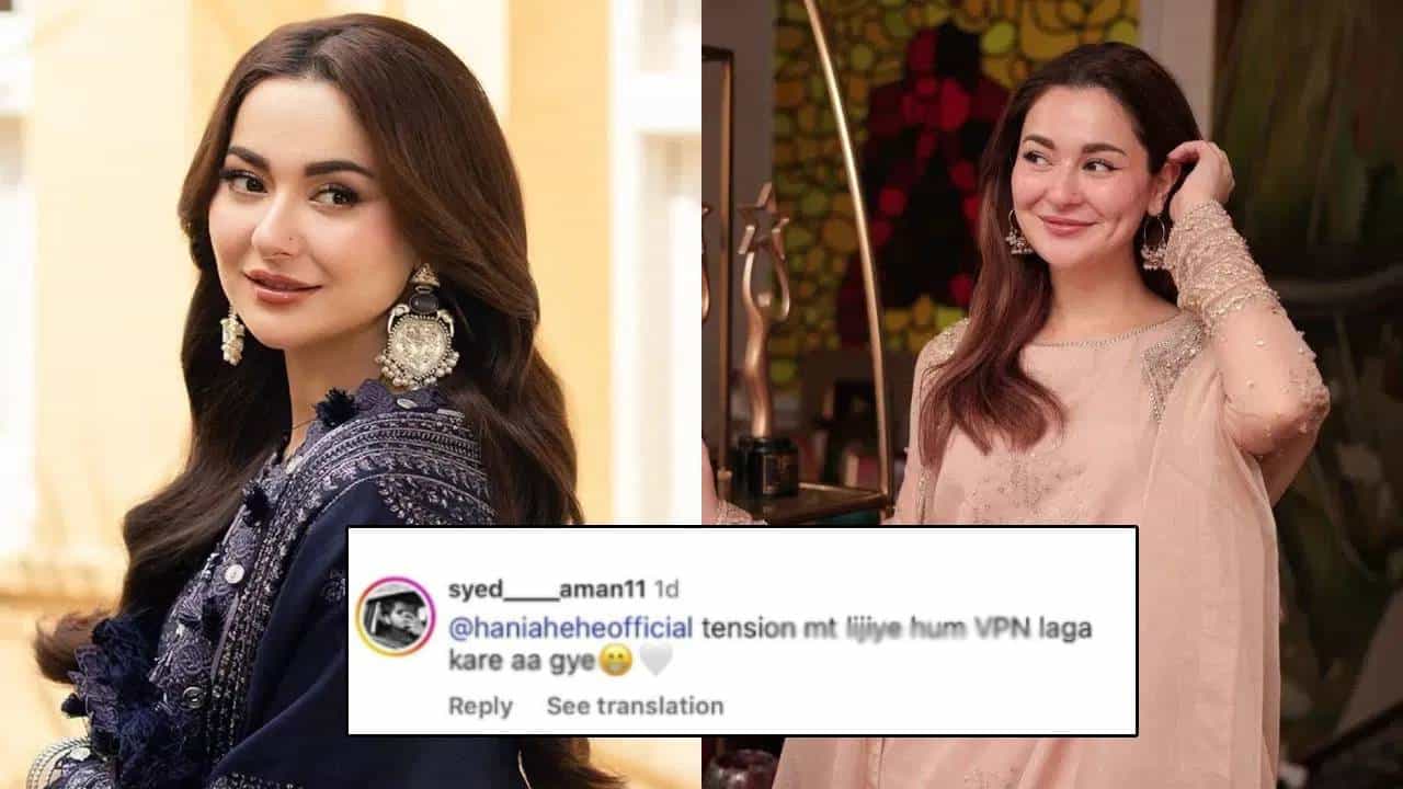काही भारतीय चाहत्यांनी पाकिस्तानी अभिनेत्री हानिया आमिरच्या इन्स्टाग्राम अकाऊंटवर कमेंट्स करण्यासाठी VPNचा वापर करण्यास सुरुवात केली आहे. एका यूजरने हानिच्या इन्स्टाग्राम अकाऊंटवरील पोस्टवर कमेंट करत, ‘हानिया तू काळजी करु नकोस. आम्ही VPNचा वापर करुन आले आहोत’ असे म्हटले आहे. त्यावर हानियाने देखील रिप्लाय देते ‘आता मला रडायला येईल’ असे म्हटले आहे. तर दुसऱ्या एका यूजरने, ‘हॅलो हानिया, VPNचे सब्स्क्रीपशन केवळ तुझ्यासाठी घेतले आहे. भारताकडू प्रेम’अशी कमेंट केली आहे. त्यावर हानियाने उत्तर देत ‘लव्ह यू’ असे म्हटले आहे.