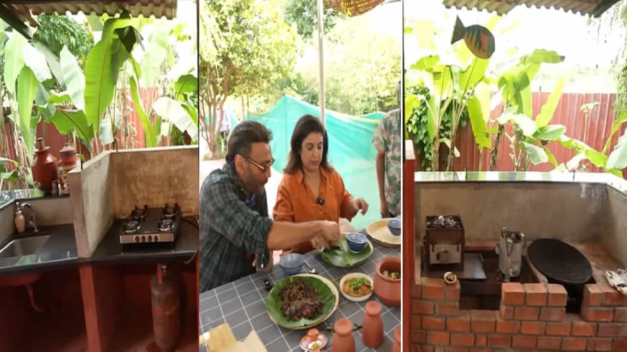 अभिनेता जॅकी श्रॉफचे मुंबईपासून दूर असलेले फार्महाऊस साधेपणा व नैसर्गिक जीवनशैलीचे प्रतीक आहे. त्यांच्या शेतातील स्वयंपाकघरात मातीची भांडी, लाकडी छत आणि चूलही आहे. त्यांचे घर गावात राहण्याची भावना देतं. जॅकी श्रॉफ त्यांच्या मातीशी जोडलेले आहेत याचं उत्तम उदाहरण म्हणजे जॅकी श्रॉफ यांचं हे घर आहे.