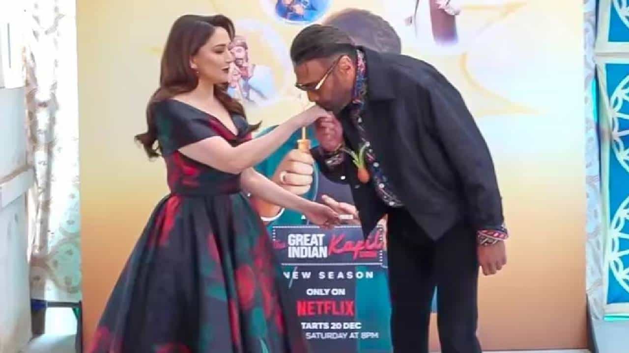 'देवदास'मधील चुन्नीलाल आणि चंद्रमुखी म्हणजेच अभिनेत्री माधुरी दीक्षित आणि जॅकी श्रॉफ यांची नुकतीच 'द ग्रेट इंडियन कपिल शो'च्या सेटवर भेट झाली. या भेटीचा व्हिडीओ सध्या सोशल मीडियावर व्हायरल होत आहे. यावेळी जॅकी श्रॉफने माधुरीच्या हातावर किस केलं.