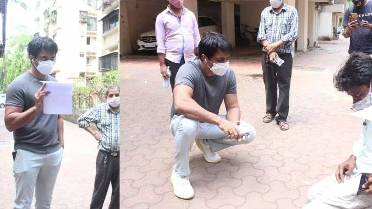 सोनू सूद येथे त्याच्या इमारतीखाली येतो आणि सर्वांच्या समस्या ऐकतो.