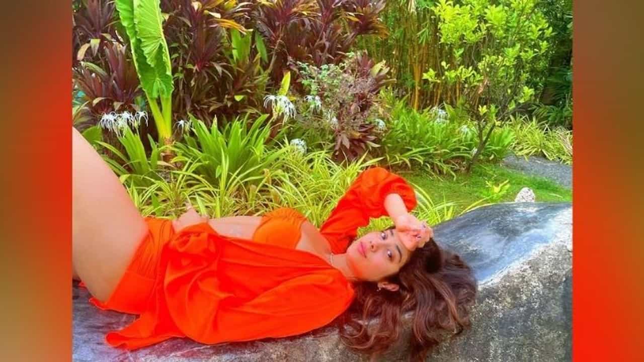 जान्हवी कपूरकडे पहिलं तर असं वाटतं की सुट्टीवर आहे. तिनं ऑरेंज कलरची बिकिनी परिधान केली आहे. (Janhvi Kapoor's cool Look, shared Pictures from garden)