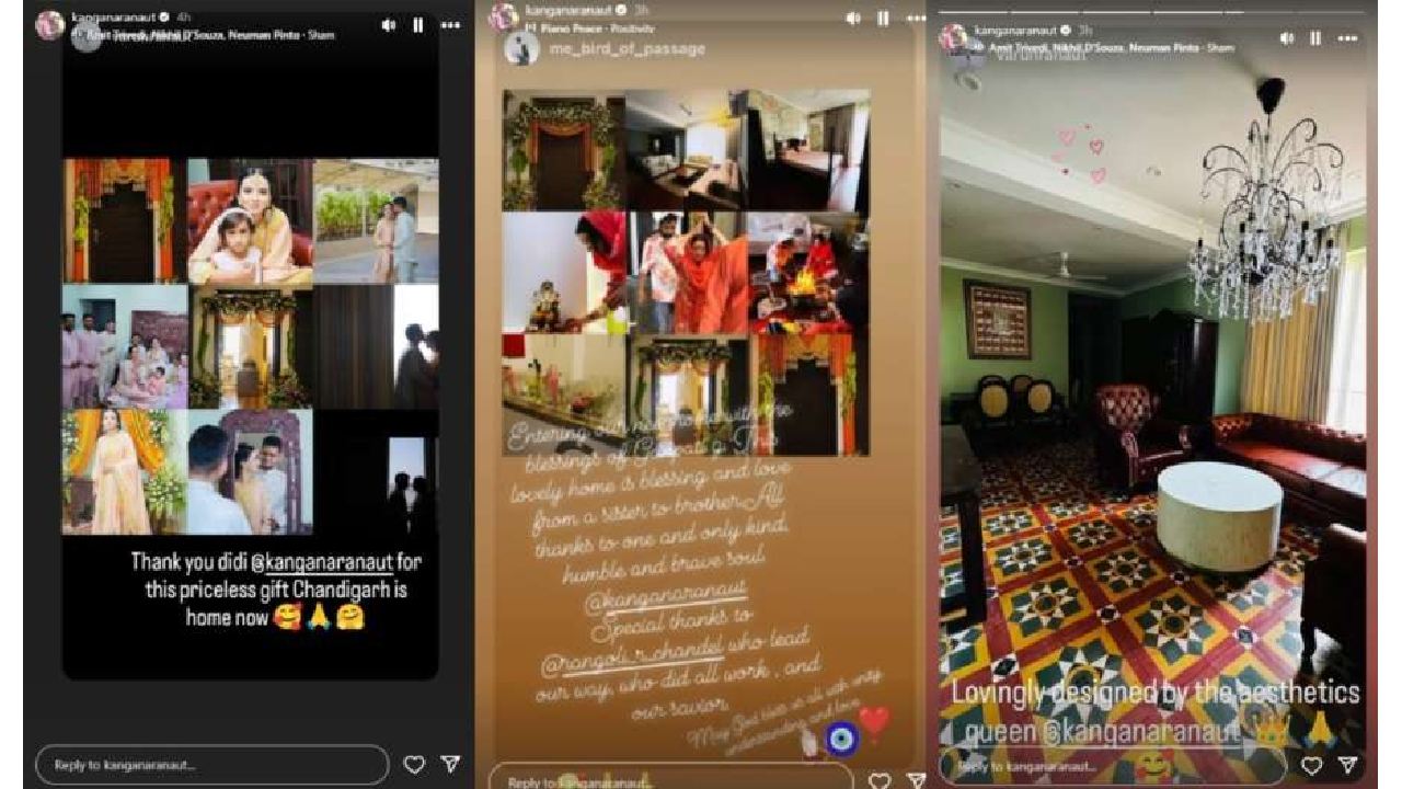 कंगना यांनी वरुणची पोस्ट त्यांच्या इन्स्टाग्राम स्टोरीमध्ये शेअर केली. ‘थँक्यू दीदी.. आता चंदीगड हे घर बनलं आहे’, असं कॅप्शन देत त्याने फोटो पोस्ट केले आहेत. कंगना यांनी बहीण रंगोलीच्या स्टोरीचेही स्क्रीनशॉट शेअर केले आहेत. ‘प्रिय बहीण.. तू नेहमीच आमच्या स्वप्नांना सत्यात उतरवण्यासाठी प्रयत्न करतेस. सर्व गोष्टींसाठी तुझे खूप खूप आभार,’ अशा शब्दांत रंगोलीने कृतज्ञता व्यक्त केली. भाऊबहिणींच्या या पोस्टवर कंगना यांनीही त्यांच्या भावना व्यक्त केल्या आहेत. ‘गुरुनानाक देवजी म्हणाले, आपल्याकडे असलेली छोट्यातली छोटी गोष्ट इतरांसोबत वाटायची. आपल्याला असं नेहमी वाटतं की जे आहे ते पुरेसं नाही. तरीही आपण इतरांना त्यातून दिल्यास, त्यापेक्षा दुसरा आनंद कोणताच असू शकत नाही. तुमची प्रत्येक गोष्ट माझ्यासोबत शेअर केल्याबद्दल धन्यवाद’, असं कंगना यांनी लिहिलंय. कंगना यांनी तिच्या इन्स्टा स्टोरीमध्ये गृहप्रवेशाचेही फोटो शेअर केले आहेत.