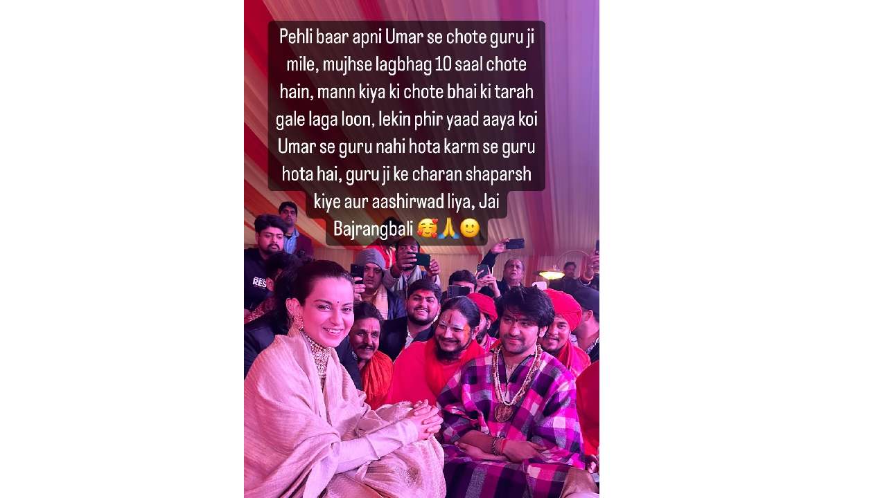 अभिनेत्री कंगना रनौतने अयोध्येत बागेश्वर बाबांची भेट घेतली. या भेटीचा फोटो सोशल मीडियावर अपलोड करत तिने एक पोस्ट लिहिली आहे. कंगनाची हीच पोस्ट सध्या सोशल मीडियावर व्हायरल होत आहे. कंगनाने लिहिलं, "छोट्या भावासारखं त्यांना मिठी मारण्याची मनात इच्छा होती, पण नंतर लक्षात आलं की.."