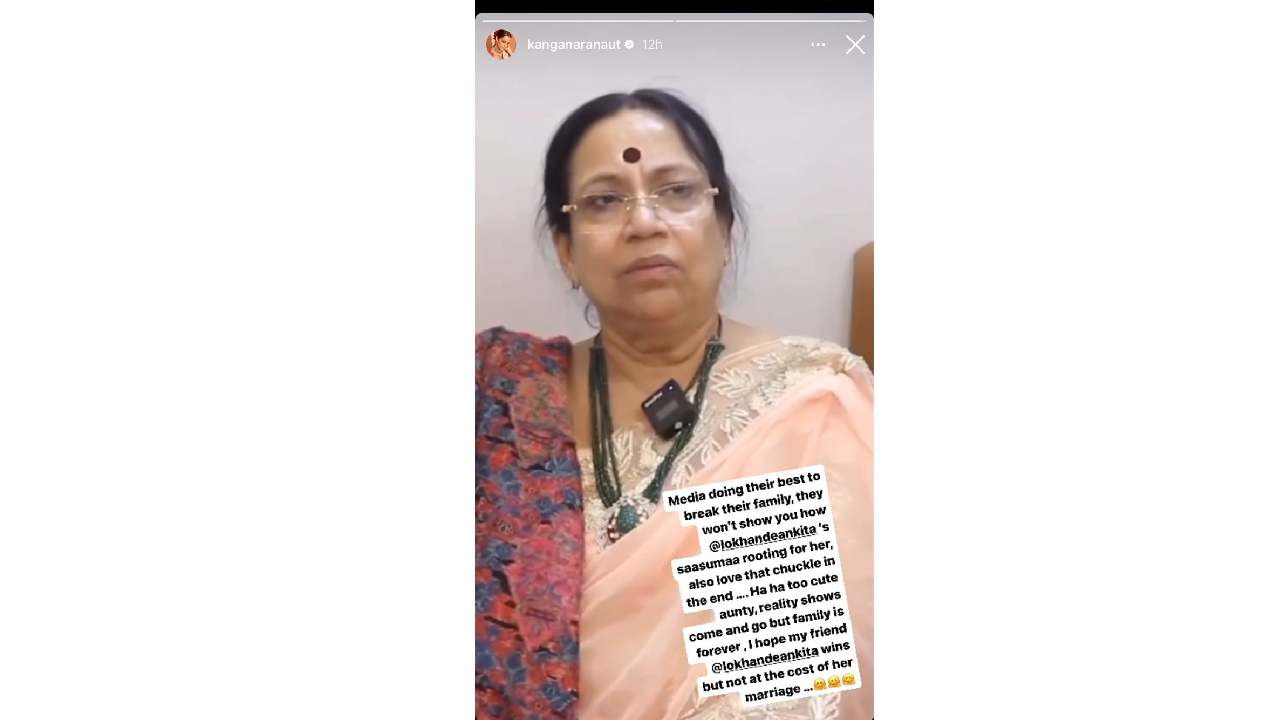 विकी जैनच्या आईच्या मुलाखतीचा हा व्हिडीओ शेअर करत कंगनाने लिहिलं, ‘त्यांचं कुटुंब मोडण्यासाठी मीडिया सर्वोत्तम काम करतेय. अंकिता लोखंडेची सासू तिची कशी साथ देतेय, हे ते तुम्हाला दाखवणार नाहीत. व्हिडीओच्या शेवटी ते हसणं खूप आवडलं. हाहाहा.. आंटी खूप क्यूट आहेत. रिॲलिटी शोज येतात आणि जातात पण कुटुंब हे सदैव सोबत असतं. माझी अशी आशा आहे की माझी मैत्रीण अंकिता लोखंडेनं हा शो जिंकावा, पण तिच्या लग्नाची किंमत मोजून नव्हे.’