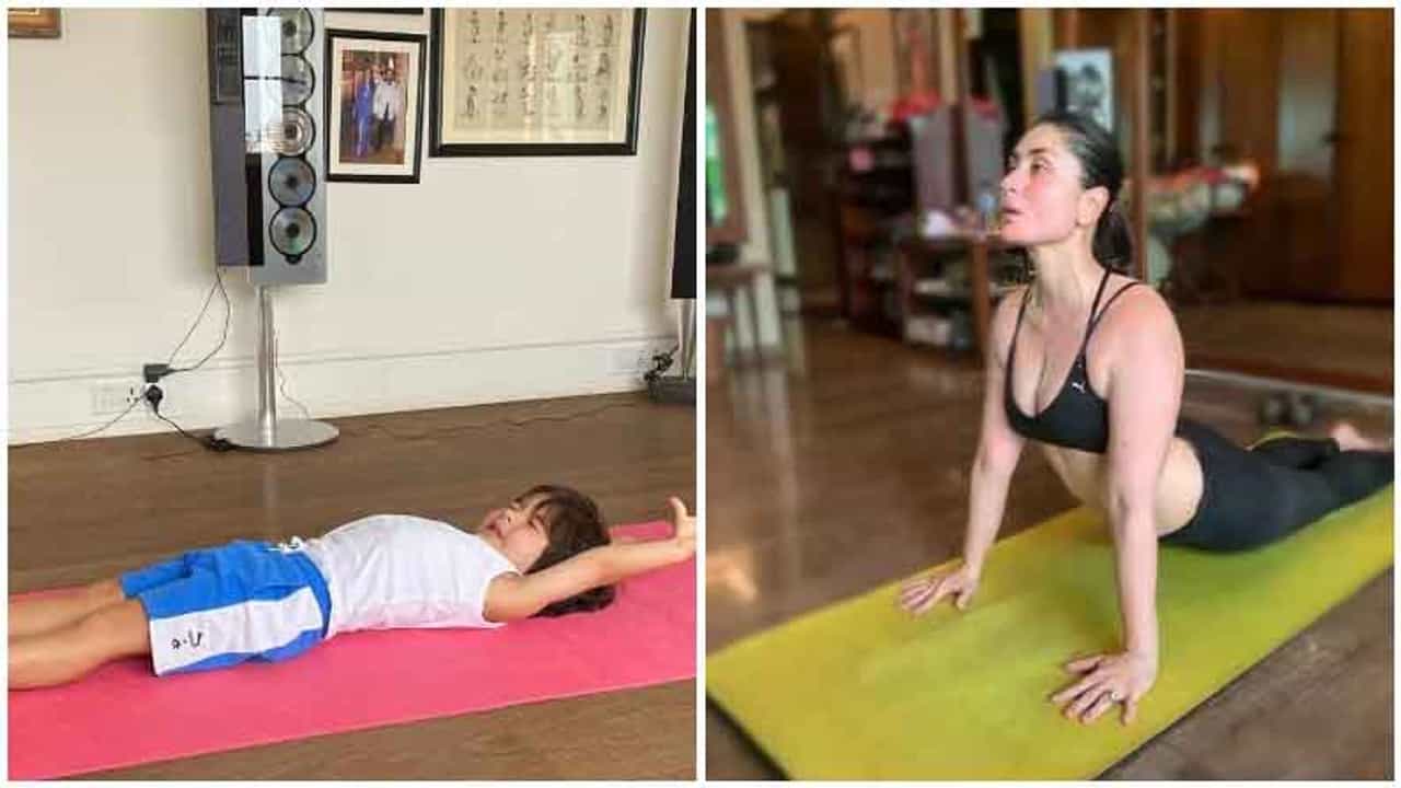 मुंबई : बॉलिवूडची लाडकी बेबो अर्थात अभिनेत्री करीना कपूर-खान (Kareena Kapoor) स्वत:ला फिट ठेवण्यासाठी नेहमी कसरत करताना दिसते. गरोदरपणानंतर करीनाचे वजन कमालीचे वाढले होते. पण, आता बाळाच्या जन्मानंतर करीनाने स्वत:ला तंदुरुस्त ठेवण्यासाठी योगा आणि व्यायाम करायला सुरुवात केली आहे. त्याचवेळी करीनाचा मुलगा तैमूर अली खान (Taimur) देखील त्याच्या आईच्या पावलांवर पाऊल ठेवून पुढे चालत आहे. तो देखील आईसारखाच घरी योगा करत आहे (Kareena Kapoor Khan Share Taimur ali khan yoga photo on instagram).