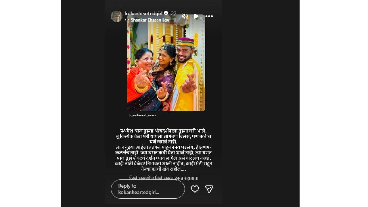 ती खंत आयुष्यभर राहील..; रील स्टार प्रथमेश कदमच्या निधनानंतर ‘कोकण हार्टेड गर्ल’ची भावूक पोस्ट