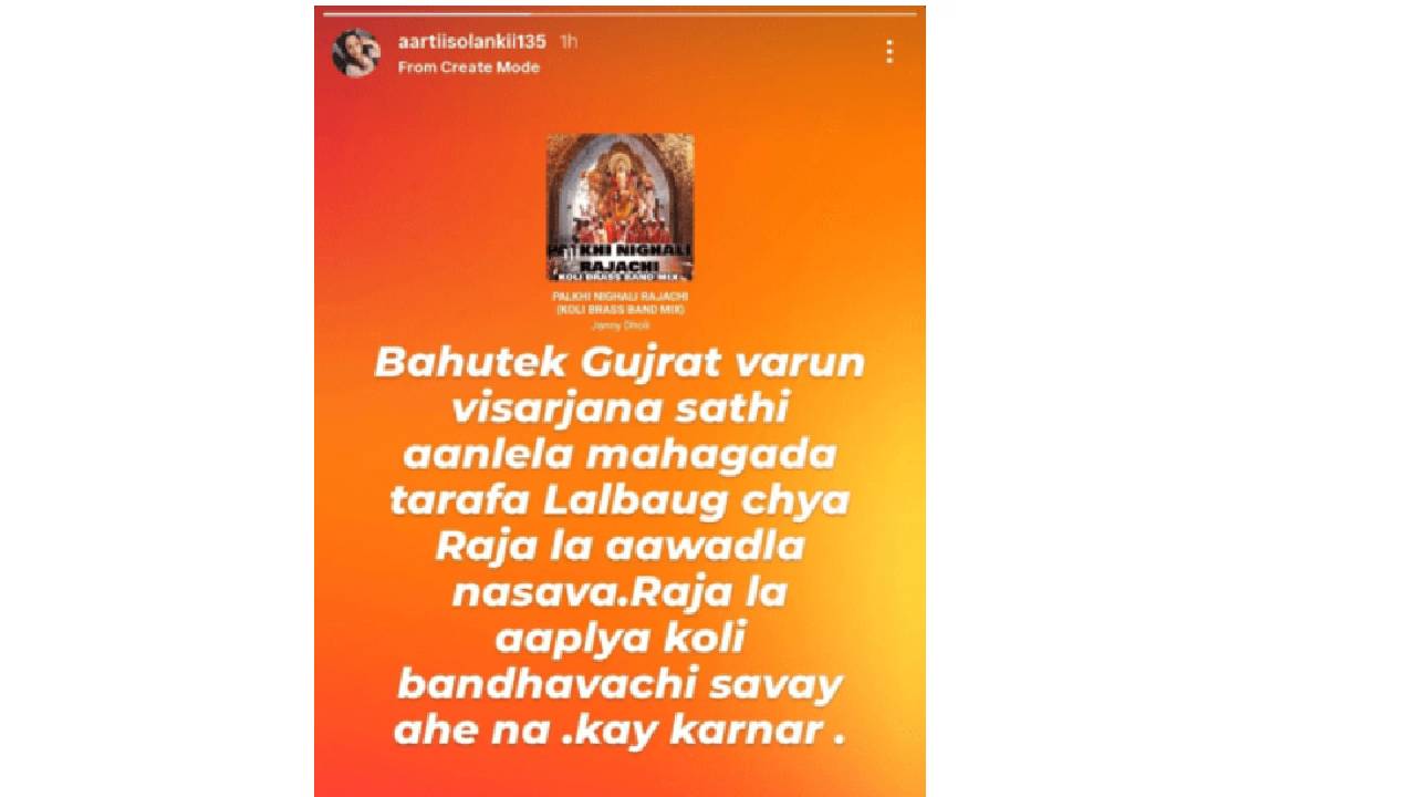 हा सगळा प्रकार सुरू असताना मंडाळाचे कार्यकर्ते आणि चौपाटीवर असलेल्या नागरिकांमध्ये घालमेल सुरू होती. दरवर्षीच्या तराफ्याला डावलून गुजरातहून तराफा आणण्याची गरजच काय होती, असा प्रश्न नागरिकांकडून उपस्थित करण्यात येत होता. अशातच यावरून एका मराठमोळ्या अभिनेत्रीने लिहिलेली पोस्ट चर्चेत आली आहे. ‘बहुतेक गुजरातवरून विसर्जनासाठी आणलेला महागडा तराफा लालबागचा राजाला आवडला नसावा. राजाला आपल्या कोळी बांधवांची सवय आहे ना, काय करणार,’ असा टोला अभिनेत्री आरती सोळंकीने लगावला आहे. गुजरावरून आणलेल्या तराफ्याबद्दल सोशल मीडियावरही नेटकऱ्यांच्या विविध प्रतिक्रिया समोर येत होत्या.