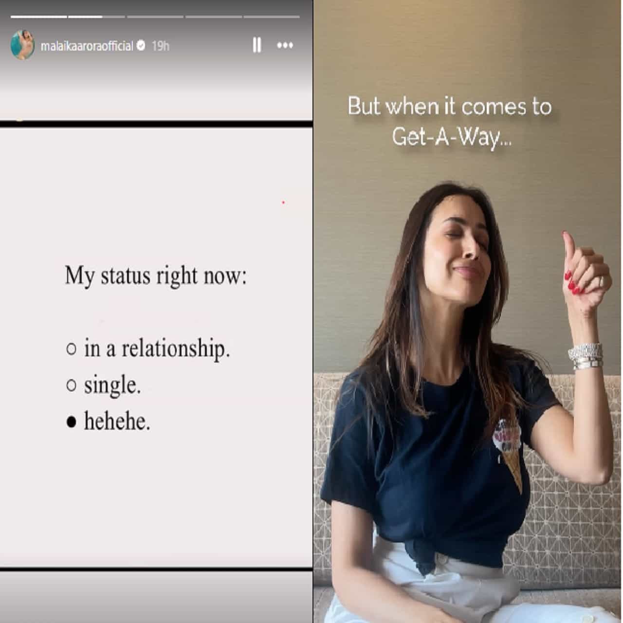 मलायकाने इंस्टाग्रामवर एक पोस्ट केली आहे, ज्यामध्ये लिहिले आहे, “या क्षणी माझी स्थिती.” यामध्ये खाली तीन पर्याय दिले आहेत, जे असे आहेत, “इन रिलेशनशिप, सिंगल आणि हिहीही.” (हीहीही म्हणजे हसण्याचे चिन्ह) त्यावेळी तिने शेवटचा पर्याय निवडला आहे ज्यामध्ये मलायकाने हसण्याचा चे चिन्ह आहे. तो पर्याय तिने हायलाइट केला आहे.. म्हणजे त्यावर तिने टिक केली आहे. पण मलायकाच्या या स्टेटसच्या पोस्टमुळे नक्की तिला काय सांगायचे आहे हे मात्र चाहत्यांना समजू शकलेलं नाही. त्यामुळे नक्कीच तेही गोंधळून गेले आहेत.