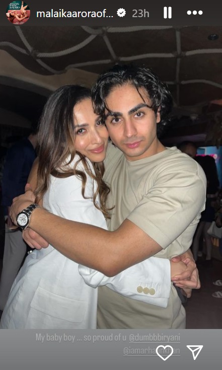 पार्टी संपल्यानंतर मलायका हिने सोशल मीडियावर मुलासोबत खास फोटो पोस्ट केला आहे. इन्स्टाग्राम स्टोरीवर फोटो मुलासोबत फोटो पोस्ट करत अभिनेत्री म्हणाली, ‘मला तुझ्यावर गर्व वाटत आहे…’ सध्या सर्वत्र फक्त आणि फक्त मलायका हिच्या पोस्टची चर्चा रंगली आहे.