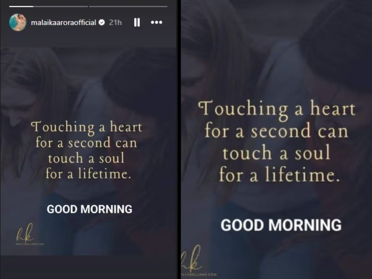 अर्जुन कपूर याने सिंगल असल्याची कबुली दिल्यानंतर मलायका अरोरा हिने देखील सोशल मीडियावर क्रिप्टिक पोस्ट करत भावना व्यक्त केल्या आहेत. अभिनेत्रीने इन्स्टाग्राम स्टोरीवर एक कोट शेअर केला आहे. ‘जर कोणी एका सेकंदासाठी जरी कोणाच्या हृदयाला स्पर्श करतो तर संपूर्ण आयुष्य त्याच्या आत्म्याला स्पर्श करतो…’ असा कोट अभिनेत्रीने शेअर केला आहे.