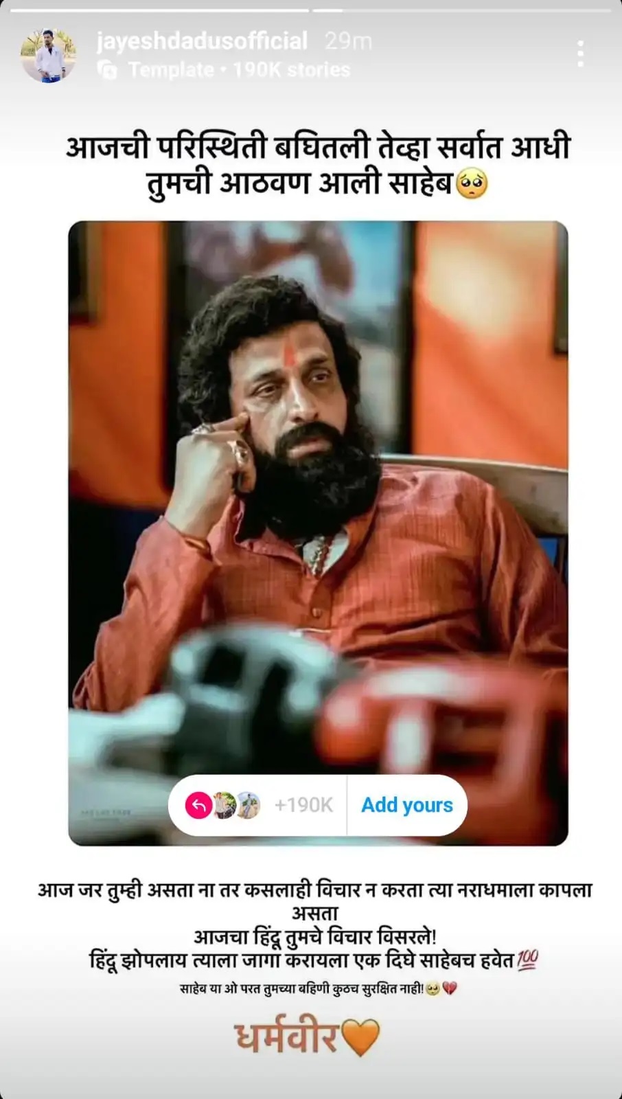 ‘आजचा हिंदू तुमते विचार विसरले! हिंदू झोपलाय त्याला जागा करायला एक दिघे साहेबच हवेत… साहेब या ओ परत तुमच्या बहिणी कुठेच सुरक्षित नाहीत… धर्मवीर…’ असं देखील पोस्टमध्ये म्हणण्यात आलं आहे. सध्या सर्वत्र अभिनेत्याची पोस्ट व्हायरल होत आहे.