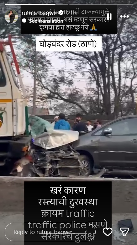 व्हिडीओ पोस्ट करत अभिनेत्री म्हणाली, ‘गाडी विरुद्ध दिशेला टाकल्यामुळे अपघात झाला, असं सांगून सरकारने कृपया हात जोडू नये…’ अपघाताचं खरं कारण, रस्त्यांची दुरवस्था’, कायम ट्रॅफिक, ट्रॅफिक पोलिस नसणं आणि सरकारचं दुर्लक्ष असं देखील म्हटलं आहे.