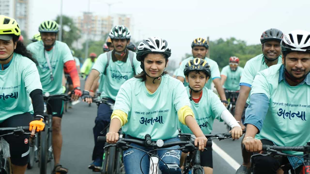 प्रताप फड दिग्दर्शित ‘अनन्या’ (Ananya) हा चित्रपट आता प्रेक्षकांच्या भेटीस येण्यास सज्ज झाला आहे. ‘अनन्या’ची सकारात्मक कहाणी प्रत्येक कानाकोपऱ्या पोहोचावी, याकरता या चित्रपटाचे सध्या जोरदार प्रमोशन सुरु आहे. या चित्रपटात अभिनेत्री हृता दुर्गुळेच्या (Hruta Durgule) म्हणजेच ‘अनन्या’च्या आयुष्यात सर्वात जवळची गोष्ट म्हणजे तिची जिवाभावाची सायकल. या दोघांचं एक अनोखं नातं आहे. खरंतर प्रत्येक सायकलस्वाराचे त्याच्या सायकलसोबत एक वेगळंच नातं असतं. नुकतीच हृतानेही कल्याणमध्ये (Kalyan) काही सायकलस्वारांसोबत सायकल चालवली.