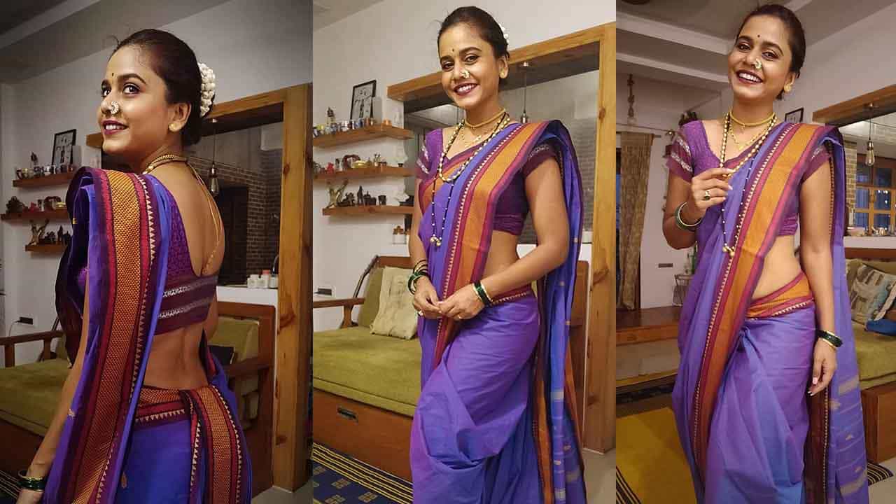 ‘विजयादशमी मैत्रिणींनो, ही सुंदर cotton साडी मला @aarsahandloom ने दसऱ्यानिमित्त भेट पाठवली. ही साडी पाचवारीच आहे. मी ती नववारी सारखी नेसलेय. Youtube वर पाचवारीची नववारी कशी नेसावी याचे ढीगभर videos तुम्हांला बघायला मिळतील. खूप सोप्पी आहे. रेशमी खण blouse आहे. जो मी माझ्या college मध्ये असताना शिवला होता… माझ्या गावावरून (म्हसवड) हे कापड आणलं होतं. आता असे रेशमी खण क्वचितच मिळतात. वीस एक वर्ष झाली असतील या blouse ला! वीस वर्षांपूर्वीचा blouse आपल्याला अजूनही व्यवस्थित बसतो याचा एक वेगळाच आनंद असतो. हो की नाही? काही गोष्टी जपून ठेवायला मला खूप आवडतं, त्यातलीच ही एक गोष्ट!’, असे कॅप्शन देऊन तिएन ही पोस्ट शेअर केली होती.