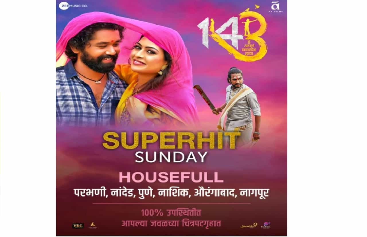 मुंबई : प्रेमाची अनोखी परिभाषा प्रेक्षकांसमोर आणत ‘शारदा फिल्म्स प्रोडक्शन’ (Sharada Films Production) निर्मित आणि विरकुमार शहानिर्मित ‘वन फोर थ्री‘ (143 Movie) हा रोमँटिक आणि खऱ्याखुऱ्या जीवनावर आधारित चित्रपट 4 मार्चपासून प्रेक्षकांच्या मनावर अधिराज्य गाजवत आहे. 4 मार्चला हा चित्रपट सिनेमागृहात येताच प्रेक्षकांनी चित्रपट बघायला गर्दी केली. दाक्षिणात्य चित्रपटांचा टच असलेला हा मराठीतील पहिला वहिला चित्रपट पाहण्यास प्रेक्षक उत्सुक असून भरभरून प्रतिसाद देताना पाहायला मिळत आहेत. दोन दिवसातच चित्रपटाने सिनेमागृहात चांगलीच बाजी मारली असून, मराठवाडा, औरंगाबाद, नांदेड, परभणी, नागपूर, नाशिक या भागात चित्रपट हाऊसफुल्ल झाला आहे. तर पुण्यातील काही भागात चित्रपटाने हाऊसफुल्ल होत चांगलाच गल्ला केला आहे. प्रेक्षकही चित्रपटाचे भरभरून कौतुक करताना पाहायला मिळत आहेत, शिवाय चित्रपटातील गाण्यांनी रसिकांच्या मनाचा ठाव घेतला आहे.
