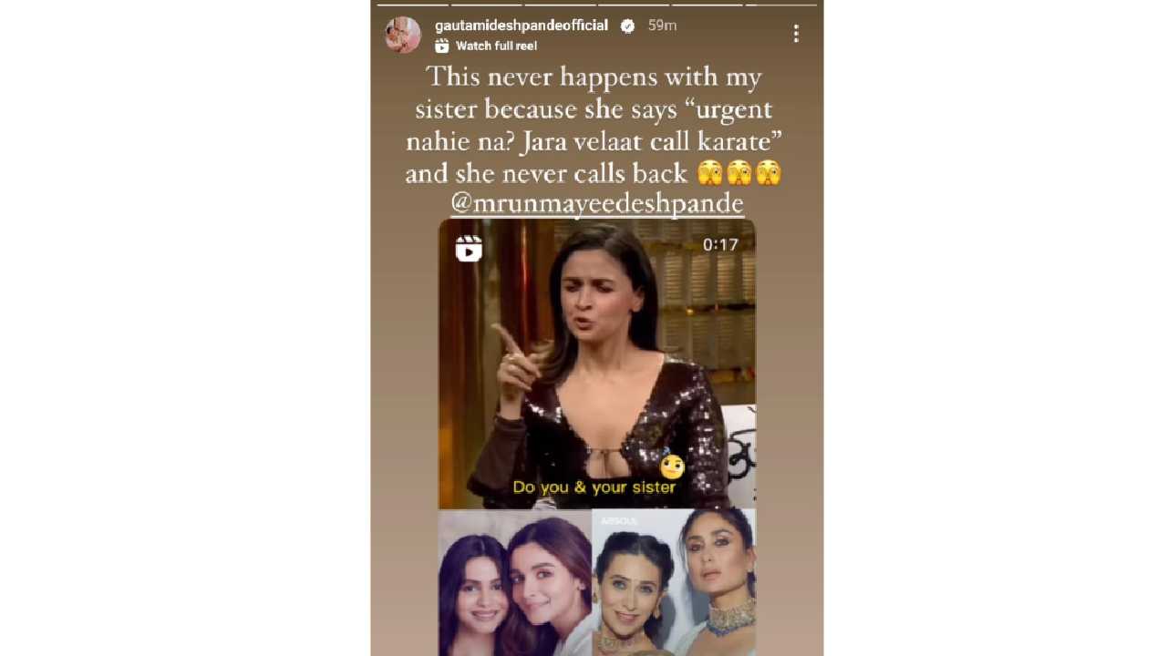 आलियाचा हा व्हीडिओ गौतमीने शेअर केलाय. त्यावर ती म्हणते, माझ्यासोबत असं कधीच होत नाही. कारण माझी बहिण कायम म्हणते की, अर्जंट नाहीये ना? जरा वेळात फोन करते. पण ती कॉल बॅक करतच नाही, असं गौतमीने तिच्या पोस्टमध्ये म्हटलं आहे.