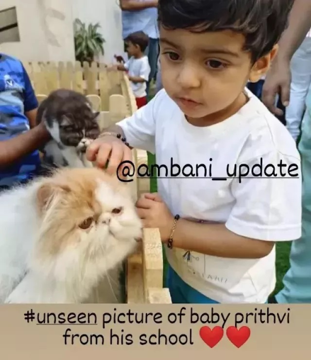अंबानी कुटुंबाच्या एका फॅनपेजने पृथ्वी आकाश अंबानी (Prithvi Akash Ambani) याचा एक शाळेतील खास फोटो शेअर केला आहे. फोटोमध्ये पृथ्वी एका मांजरीसोबत खेळताना दिसत आहे. एवढंच नाही तर, पृथ्वी मंजरीवर प्रेम देखील व्यक्त करताना दिसत आहे. सध्या सोशल मीडियावर फक्त आणि फक्त मुकेश अंबानी यांच्या नातवाची चर्चा रंगली आहे.