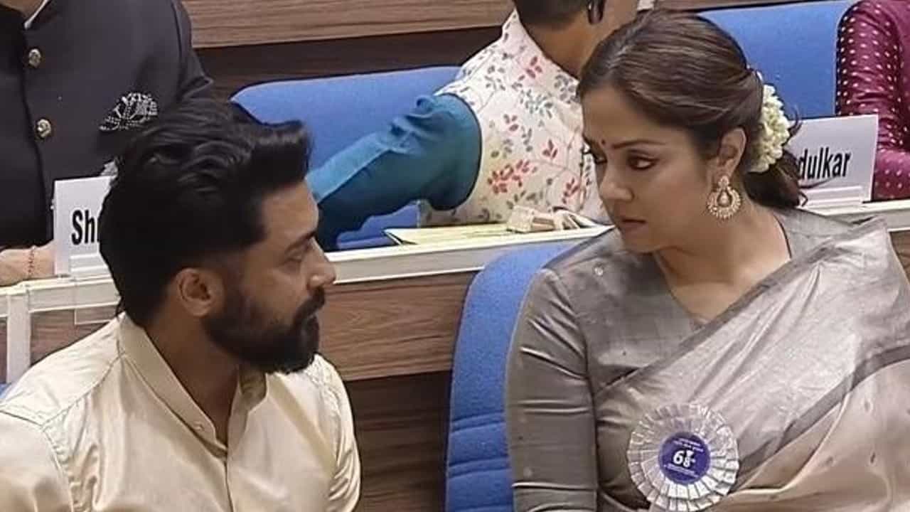 सूर्याला 'सूराराई पोट्रू' या चित्रपटासाठी सर्वोत्कृष्ट अभिनेत्याचा राष्ट्रीय पुरस्कार मिळाला आहे. पुरस्कार सोहळ्यातील दोघांचे फोटो पाहून 'पॉवर कपल' अशा शब्दांत नेटकरी कौतुक करत आहेत.