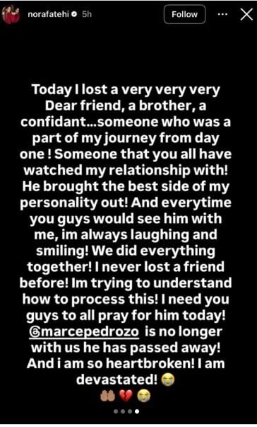 नोरा फतेही दुःख व्यक्त करत म्हणाली, ‘आज मी माझा सर्वात जवळचा मित्र आणि भावाला गमावलं आहे… अशी कोणतीच व्यक्ती नाही, जी माझ्या प्रवासाच्या पहिल्या दिवसापासून माझ्या सोबत होती… मार्से माझ्या पर्सनॅलिटीची सर्वात बेस्ट बाजू समोर आणायचा… जेव्हा जेव्हा लोकांनी आम्हाला पाहिलं, आम्ही कायम हसत खेळत असायचो…’ असं म्हणत नोरा हिने दुःख व्यक्त केलं..