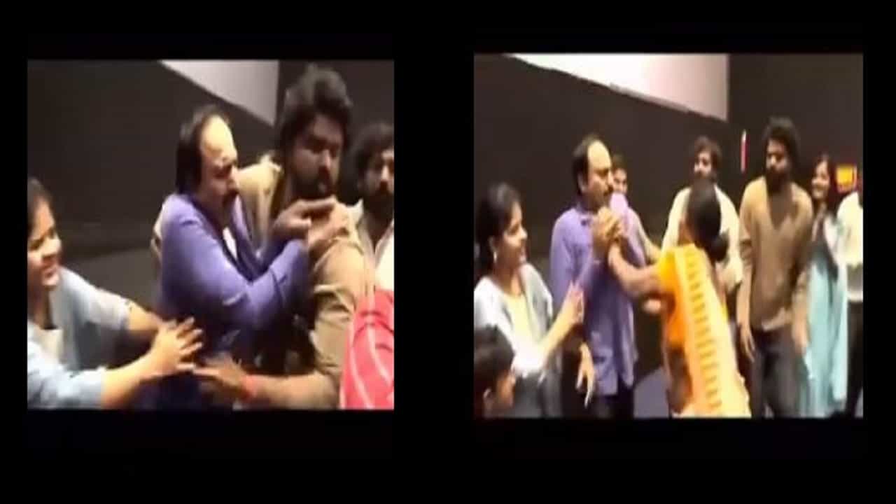 या व्हिडिओत सिनेमात सुरू असल्याचं दिसत आहे. त्यानंतर अचानक सिनेमातील कलाकार चाहत्यांना सरप्राइज द्यायला थिएटरमध्ये येतात. तेवढ्यात प्रेक्षकांमधील एक महिला कलाकारांजवळ धावत येत असल्याचं दिसत आहे. अभिनेत्याची कॉलर पकडून त्यांच्या कानशिलात लगावल्याचे दिसत आहे . हैदराबादमधील एका थिएटरमध्ये हा प्रकार घडला आहे. तेलुगु अभिनेता रामास्वामी यांच्याबरोबर ही घटना घडली आहे.