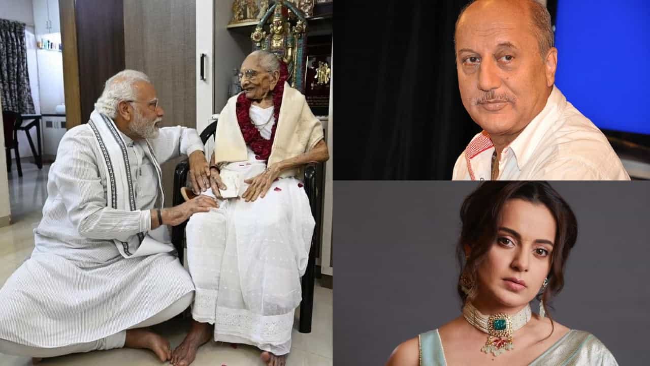अभिनेत्री कंगना रनौतने नरेंद्र मोदी यांचा आईसोबतचा फोटो पोस्ट करत लिहिलं, ‘ईश्वर पंतप्रधान नरेंद्र मोदी यांना या कठीण काळात धैर्य आणि शांती देवो, ओम शांती.’ अनुपम खेर यांनीसुद्धा फोटो पोस्ट करत भावना व्यक्त केल्या.