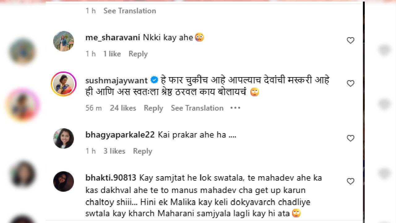 सध्या सोशल मीडियावर प्राजक्ताच्या रिसेप्शनचा व्हिडीओ व्हायरल झाला आहे. या व्हिडीओमध्ये तिला नंदीवरून येताना पाहून अनेकांनी टीका केली आहे. अभिनेत्री सुष्मा यांनी ‘हे फार चुकीच आहे आपल्याच देवांची मस्करी आहे ही आणि अस स्वतःला श्रेष्ठ ठरवल काय बोलायचं‘ अशी कमेंट केली आहे. दुसऱ्या एका यूजने हा काय प्रकार आहे? असा प्रश्न विचारला आहे. अनेकांनी प्राजक्ताला ट्रोल केले आहे. सोशल मीडियावर हा व्हिडीओ चर्चेचा विषय ठरत आहे.