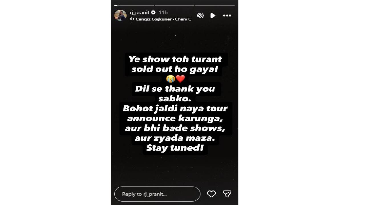 हा जवळपास दीड तासाचा स्टँडअप कॉमेडी शो होता, ज्याची सर्वांत अनोखी बाब म्हणजे सर्व तिकिटं अवघ्या काही मिनिटांत विकली गेली होती. ऑनलाइन तिकिटांची विक्री सुरू होताच अर्ध्या तासांत सर्व तिकिटं भराभर विकली गेली. खुद्द प्रणितनेच हा शो ‘सोल्ड आऊट’ झाल्याची बातमी इन्स्टा स्टोरीद्वारे चाहत्यांना दिली होती. ‘हा शो लगेचच सोल्ड आऊट झाला. सर्वांचे मनपासून आभार. मी लवकरच टूरची घोषणा करेन. आणखी मोठमोठे शोज आणि आणखी मजा’, अशी पोस्ट त्याने लिहिली होती. प्रणितच्या या शोची झलक सोशल मीडियावर पहायला मिळाली. आवेज दरबार, बसीर अली, नेहल चुडासमा, नगमा मिराजकर, गौरव खन्ना यांसह ‘बिग बॉस 19’मधील इतरही स्पर्धक या शोमध्ये उपस्थित होते.