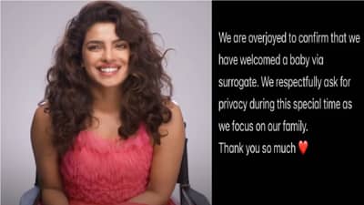 काही दिवसांपूर्वी एका मुलाखतीमध्ये प्रियंका चोप्राने आई होण्याची इच्छा व्यक्त केली होती. त्यानंतर लगेच सरोगसीद्वारे आपण आई झाल्याचे प्रियंकाने जाहीर केले आहे. “आम्ही नुकतेच बाळाचे स्वागत केल असून आम्ही खूप आनंदी आहोत. सध्या आम्ही आमच्या कुटुंबाकडे लक्ष केंद्रित करत आहोत. त्यामुळे अशा विशेष क्षणी आम्हाला खासगीपणा जपण्याची गरज आहे,” असे प्रियंकाने इन्स्टाग्रामद्वारे सांगितले आहे.