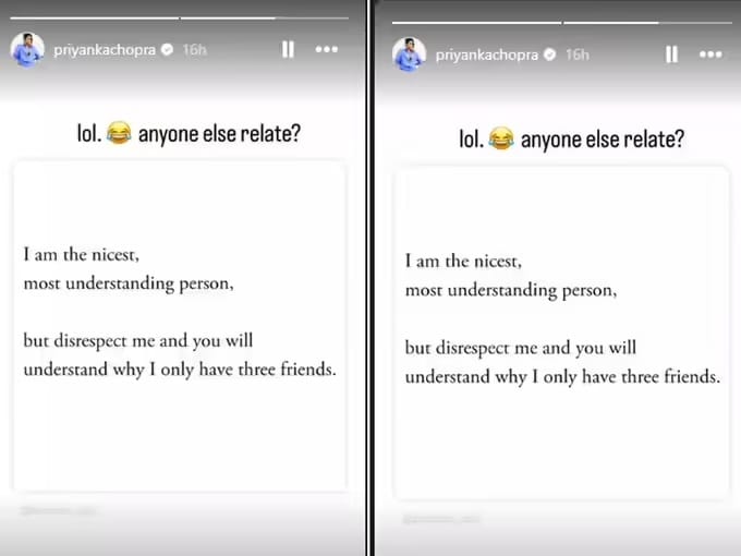 43 वर्षीय प्रियांका चोप्राने तिच्या इंस्टाग्राम स्टोरीवर पोस्ट केलेल्या पोस्टमध्ये तिने स्वाभिमान आणि सीमा निश्चित करण्याबद्दल देखील लिहिलं आहे. ही पोस्ट वाचल्यानंतर, प्रियांकाने अचानक अशी पोस्ट का लिहिली हे जाणून घेण्याची उत्सुकता नेटकऱ्यांना देखील आहे.
