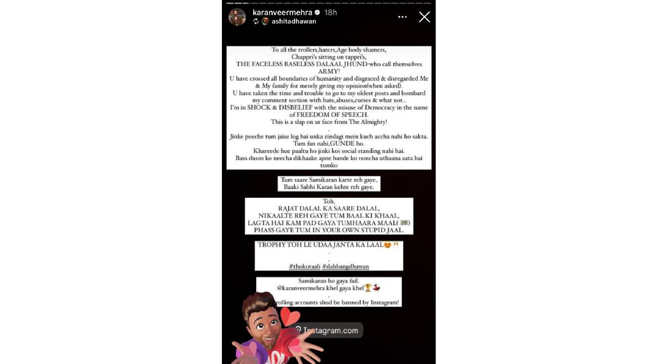 करणवीर मेहराची पोस्ट-