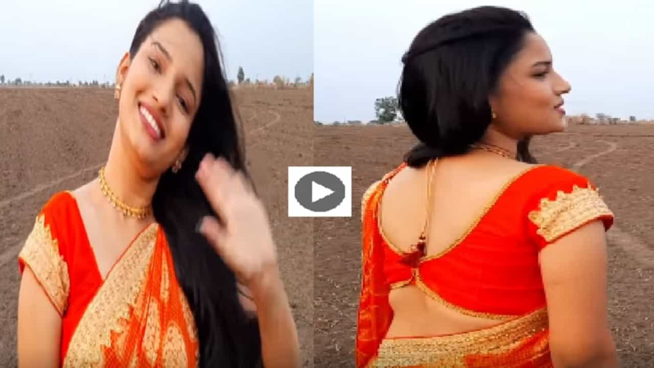 (Rajeshwari Kharat uploaded video on Social Media looking beautiful in Orange saree)