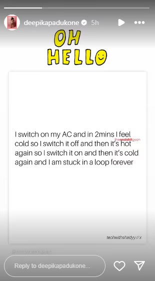 अभिनेत्री दीपिका पादुकोण सध्या अभिनयापासून दूर आहे. गेल्या काही दिवसांपासून अभिनेत्री प्रोफेशनल आयुष्यामुळे नाहीतर, खासगी आयुष्यामुळे चर्चेत आहे. काही दिवसांपूर्वी दीपिका आणि अभिनेता रणवीर सिंग यांनी आनंदाची बातमी चाहत्यांसोबत शेअर केली. आता देखील अभिनेत्रीने सोशल मीडियावर एक पोस्ट शेअर केली आहे. ज्यामध्ये अभिनेत्रीने तिला होत असलेल्या त्रासाबद्दल सांगितलं आहे. प्रेग्नेंसी काळात दीपिका हिला वातावरणात होत असलेल्या बदलाचा त्रास होत आहे.