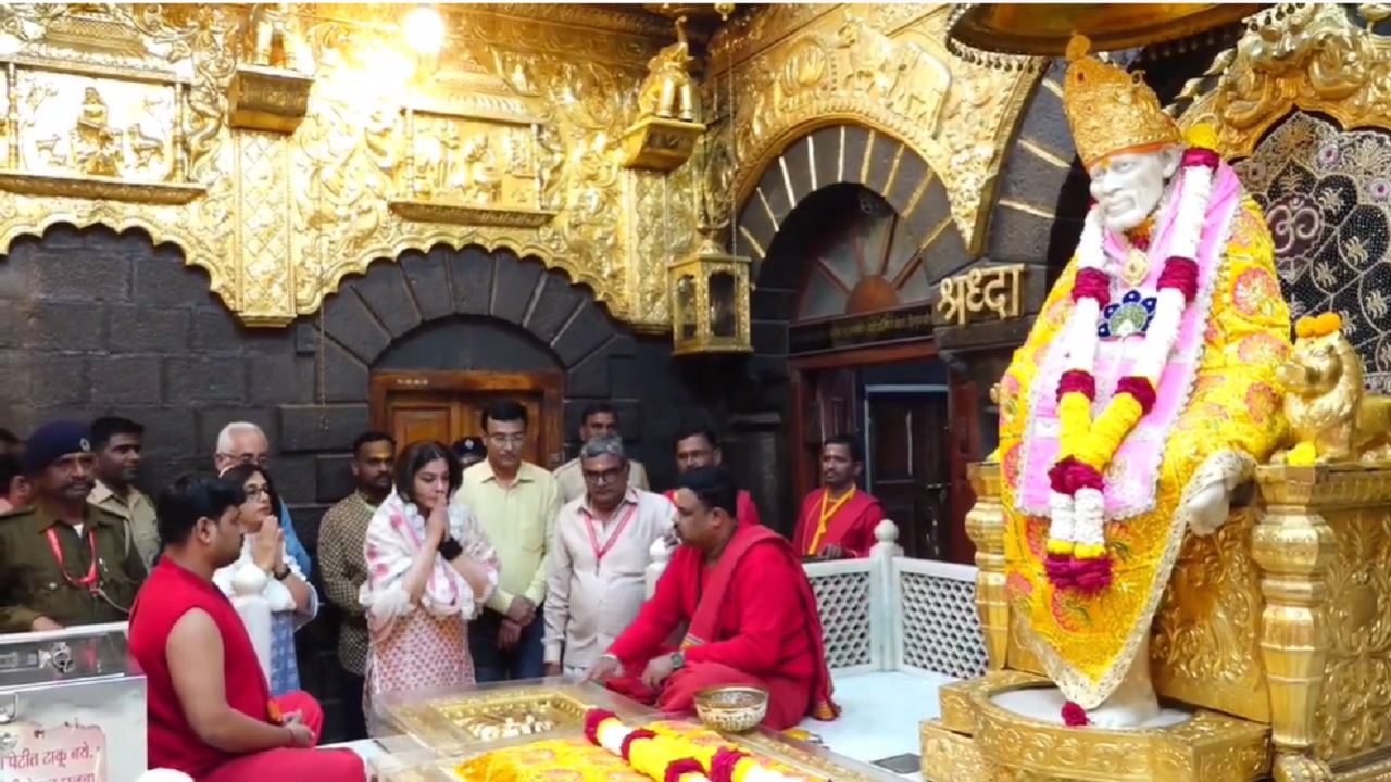 नव्वदीच्या दशकात हिंदी सिनेमात आपल्या अदा आणि अभिनयाने सुपरहिट ठरलेली अभिनेत्री रविना टंडन हिने आज साई दरबारी हजेरी लावत साईबाबांचे दर्शन घेतलं. रविना टंडन हिची मुलगी राशा थडानी हिने ‘आझाद’ सिनेमातून नुकतेच पदार्पण केलं असून तिचा पहिलाच सिनेमा बॉक्स ऑफिसवर हिट ठरलाय. आझाद सिनेमात अजय देवगणसह त्याचा पुतण्या अमन देवगणची देखील भुमिका आहे तर राशा थडानीच्या नृत्य आणि अभिनयाचं देखील सिनेमा प्रेमींकडून कौतूक होतय…17 जानेवारी आझाद हा सिनेमा प्रदर्शित झाला असून सिनेमाने चांगली कमाई केलीय.