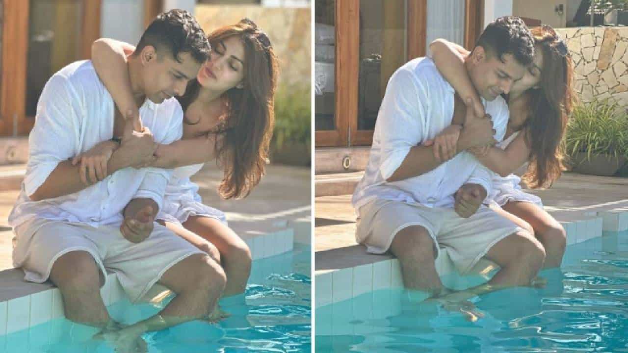 रियाने पोस्ट केलेल्या या फोटोंमध्ये ती पूलच्या जवळ बसून एका मुलाला गालावर किस करताना दिसतेय. पहिल्या फोटोमध्ये तिने त्याच्या गळ्यात हात टाकले आहेत. तर दुसऱ्या फोटोमध्ये ती त्याला किस करताना पहायला मिळतेय.