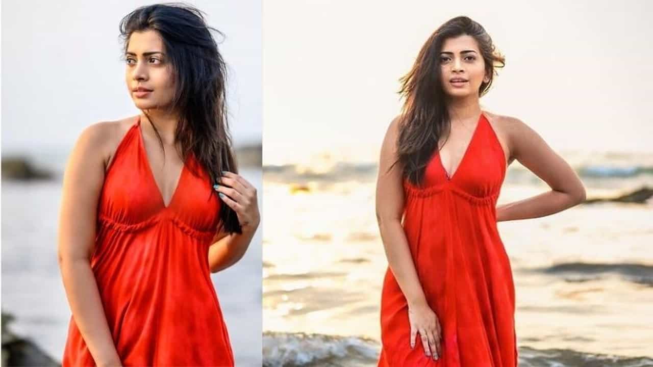 समुद्र किनारा, सूर्यास्त केशरी रंगाच्या ड्रेसमध्ये ती कमालीची हॉट आणि सुंदर दिसतेय.