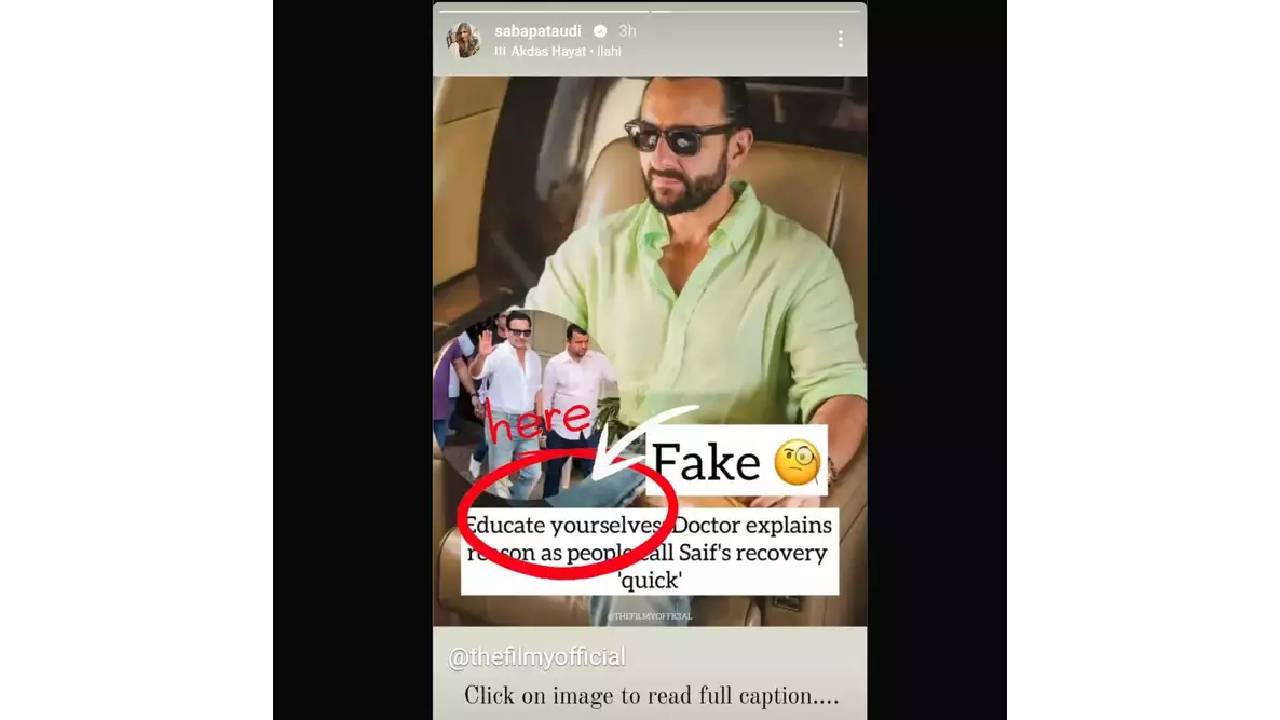 अभिनेता सैफ अली खान सर्जरीनंतर इतका लवकर बरा कसा झाला, असा सवाल अनेकांनी उपस्थित केला होता. त्यावर आता सैफच्या बहिणीने सडेतोड उत्तर दिलं आहे. सैफची बहीण सबा पतौडीने इन्स्टाग्राम स्टोरीमध्ये एक पोस्ट शेअर केली आहे.