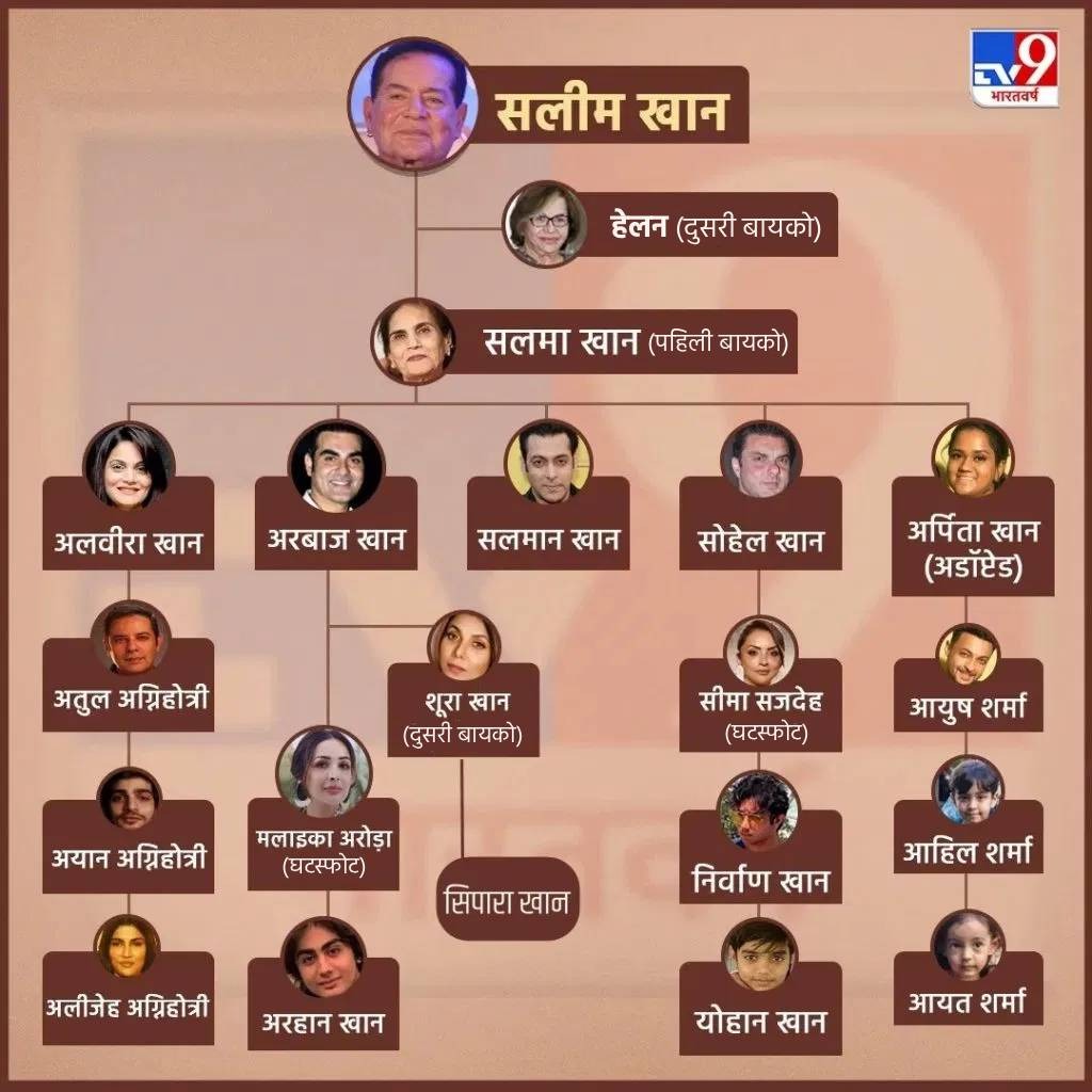 सलमान खानच्या “खानदाना”ची कथा, दिग्गज पटकथा लेखक सलीम खान यांच्यापासून सुरू होते. “शोले” आणि “दीवार”यांसारखे अनेक उत्कृष्ट, सदाबहार चित्रपट लिहिणारे सलीम यांनी स्वतःचं कुटुंबंही उत्कृष्ट पटकथेसारखं आहे. सलीम खान यांनी 1964 साली सलमा खान (सुशीला चरक) यांच्याशी लग्न केलं. त्यांच्यापासून त्यांना चार मुले आहेत, परंतु 1981 मध्ये जेव्हा त्यांनी प्रसिद्ध नृत्यांगना हेलेनशी दुसरे लग्न केले तेव्हा समाजात अनेक प्रश्न उपस्थित झाले.
