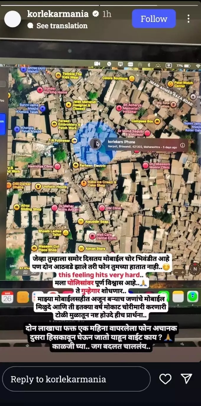 अशात आयफोन असल्यामुळे मोबाइलमध्ये असणाऱ्या ट्रॅकिंग सिस्टिमवरुन त्याचा फोन भिवंडीत असल्याचं अभिनेत्याला कळलं आहे. याबद्दल इन्स्टाग्राम स्टोरीवर एक फोटो शेअर करत अभिनेता म्हणाला, ‘जेव्हा तुम्हाला समोर दिसत आहे मोबाईल चोर भिवंडीत आहे. पण दोन आठवडे झाल्यानंतर देखील फोन तुमच्या हातात नाही… ही भावनाच फार कठीण आहे. मला पोलिसांवर पूर्ण विश्वास आहे.’