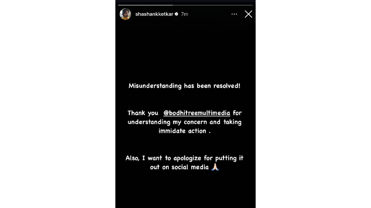 या पोस्टनंतर निर्मात्यांनी शशांकशी संपर्क साधून हे प्रकरण परस्पर मिटवण्याचा प्रयत्न केला. यानंतर शशांकनेही सोशल मीडियावर पोस्ट लिहित हे प्रकरण मिटल्याचं स्पष्ट केलं. त्याचप्रमाणे सोशल मीडियावर हा मुद्दा मांडल्याप्रकरणी माफीसुद्धा मागितली.
