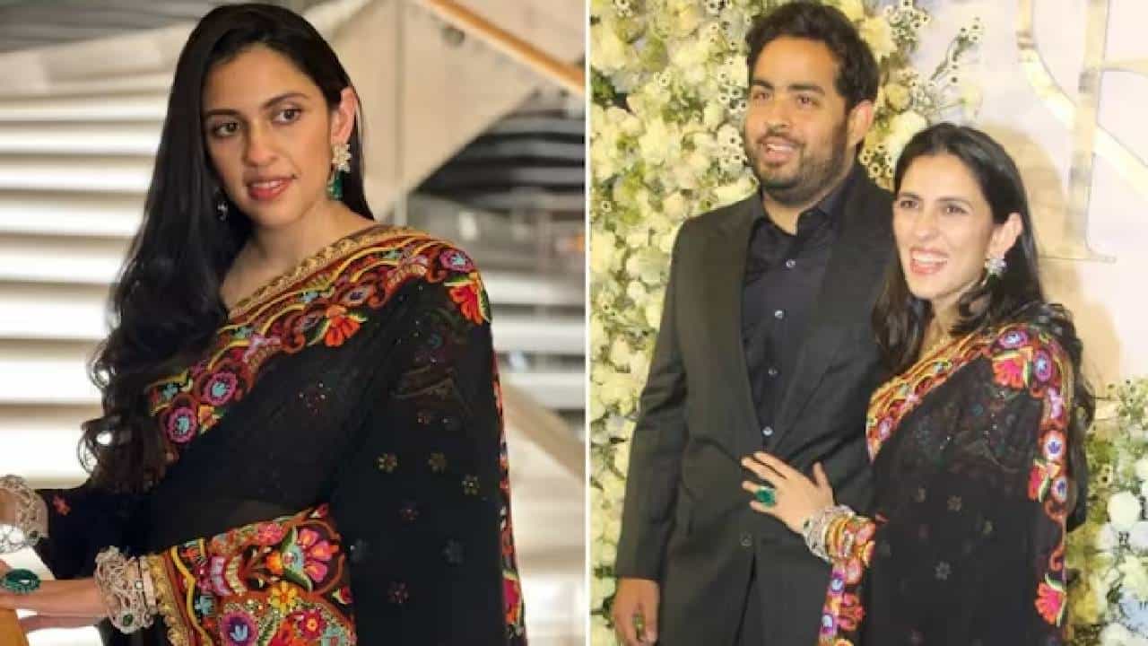 आकाशने रिसेप्शन पार्टीसाठी काळ्या सूटची निवड केली होती. तर त्याची पत्नी श्लोकाने काळ्या रंगाची साडी नेसली होती. अत्यंत सुंदर काळ्या रंगाची एम्ब्रॉयड्री साडी आणि त्यावर साजेसं एमराल्ड रिंग, डायमंड आणि एमराल्ड इअररिंग, ब्रेसलेट असा तिचा खास लूक होता.