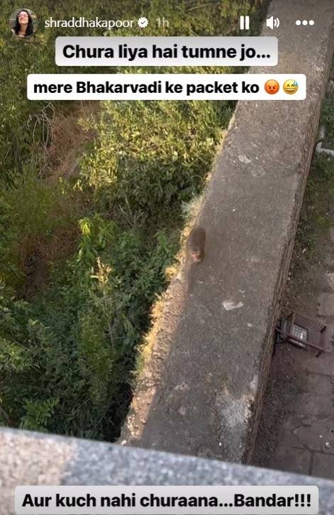 मुंबई : बाॅलिवूड अभिनेत्री श्रद्धा कपूर ही कायमच चर्चेत असणारी अभिनेत्री आहे. नुकताच श्रद्धा कपूर हिने इंस्टा स्टोरीला एक व्हिडीओ शेअर केलाय. या व्हिडीओमुळे सध्या ती चर्चेत आहे. नुकताच श्रद्धा कपूर हिच्या साहित्याची चोरी झालीये. याबद्दलच बोलतना या व्हिडीओमध्ये श्रद्धा कपूर ही दिसत आहे. आता श्रद्धा कपूर हिचा हा व्हिडीओ चांगलाच चर्चेत आहे. विशेष म्हणजे श्रद्धा कपूर हिच्या साहित्याची चोरी ही कोणत्याही माणसाने केली नाहीये, चक्क प्राण्याने ही चोरी केलीये. श्रद्धा कपूर हिच्या साहित्याची चोरी चक्क माकडाने केल्याचे सांगताना श्रद्धा कपूर ही दिसत आहे. चला तर मग जाणून घेऊयात नेमके घडले तरी काय…