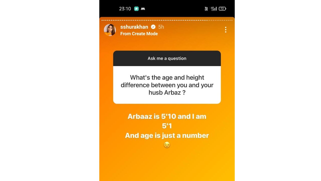 ‘तुझ्या आणि तुझा पती अरबाजच्या वयात आणि उंचीत किती फरक आहे’, असा सवाल एका युजरने केला. त्यावर उत्तर देताना शुराने लिहिलं, ‘अरबाजची उंची 5’10 फूट आहे आणि माझी उंची 5’1 फूट इतकी आहे. बाकी वय हा केवळ आकडा आहे.’ यापुढे तिने डोळा मारतानाचा इमोजी पोस्ट केला आहे. ‘पटना शुक्ला’ या चित्रपटाच्या सेटवर अरबाज आणि शुराची भेट झाली होती. शुरा ही अभिनेत्री रवीना टंडन आणि तिची मुलगी राशा थडानीची मेकअप आर्टिस्ट आहे.