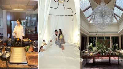 लिव्हिंग रूम आणि मास्टर बेडरूम खूप खास आहेत : घराचा लिविंग एरिया त्याच्या काचेच्या आणि लाकडी छताने बनलेला आहे. सोनम आणि तिची सासू प्रिया आहुजा अनेकदा या ठिकाणाचे फोटो शेअर करतात, जिथे छताची रचना चित्रांना एक शाही स्पर्श देते. लिविंग रूम आरामदायी, स्टायलिश आणि व्यक्तिमत्त्वाने परिपूर्ण आहे. त्याच वेळी, छतावरून लटकलेला मोठा आणि सुंदर झुंबर हे ठिकाण आणखी आकर्षक बनवतो.