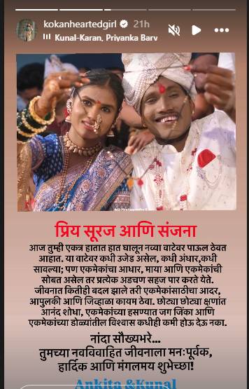 अंकिताची सुरज-संजनासाठी खास पोस्ट