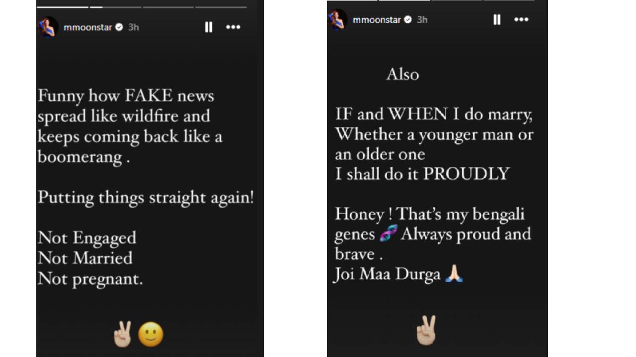 एका पोस्टमध्ये मुनमुनने लिहिलं, ‘हे अत्यंत हास्यास्पद आहे की कशा पद्धतीने खोट्या बातम्या वणव्यासारख्या पसरल्या जातात आणि बूमरँगप्रमाणे त्या पुन्हा चघळल्या जातात. पुन्हा एकदा सर्व गोष्टी स्पष्ट करते. माझा साखरपुडा झालेला नाही, लग्नही झालेलं नाही आणि मी गरोदरही नाही.’ यानंतर मुनमुनने आणखी एक पोस्ट लिहित ट्रोलर्सचं तोंड बंद केलं आहे. यात तिने लिहिलं, ‘मी जेव्हा कधी लग्न करेन तेव्हा मुलगा माझ्यापेक्षा वयाने लहान असला किंवा मोठा असला तरी मी अभिमानाने करेन. माझ्या बंगाली रक्तातच ही गोष्ट आहे. मी नेहमीच अभिमानाने आणि साहसाने गोष्टींना सामोरं जाते. जय मा दुर्गा!’